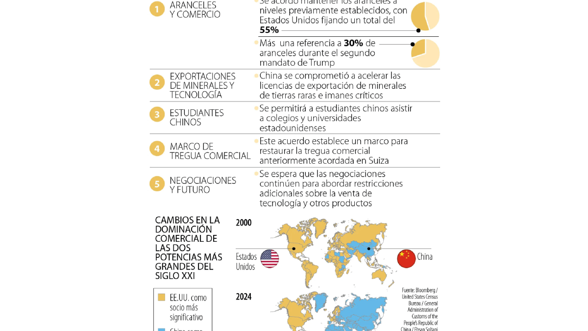 Tras estos nuevos consensos, representantes de Estados Unidos y China dijeron que restauraría el pacto que acordaron en Suiza el mes pasado, un documento que ayudó a calmar las tensiones arancelarias y que se basó en la promesa de Pekín de acelerar las licencia críticas de exportación de minerales. Estas sesiones lograron el objetivo principal: un apretón de manos entre las dos economías más grandes del mundo, dijo Lutnick.